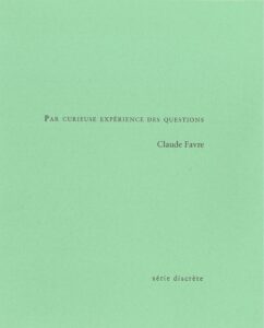 série discrète est une relation, est un échange, est un dialogue, continu et sans cesse renouvelé, à deux et avec d’autres, d’autres personnes et d’autres textes, est un dialogue avec des textes et entre des textes. série discrète est une expérience, une tentative de faire et de comprendre, de comprendre en faisant, est une manière de lire, et de penser, de plier et de déplier, et de penser l’expérience en train de se faire, en pliant. série discrète est une manière de faire parmi d’autres manières, avec elles, et parfois contre, et à la suite d’autres, est une imitation d’autres manières plus anciennes, ou peut-être plutôt une manière de se réapproprier ces manières, pour les comprendre. série discrète est un temps, n’aura qu’un temps, mais n’est qu’un temps pris, est un temps pris, sur d’autres, une occupation, nécessaire et futile, un bricolage, un équilibre, qui se construit dans le temps, qui cherche une manière de se construire, des manières, dans une relation. série discrète est une citation, des citations, un dialogue.